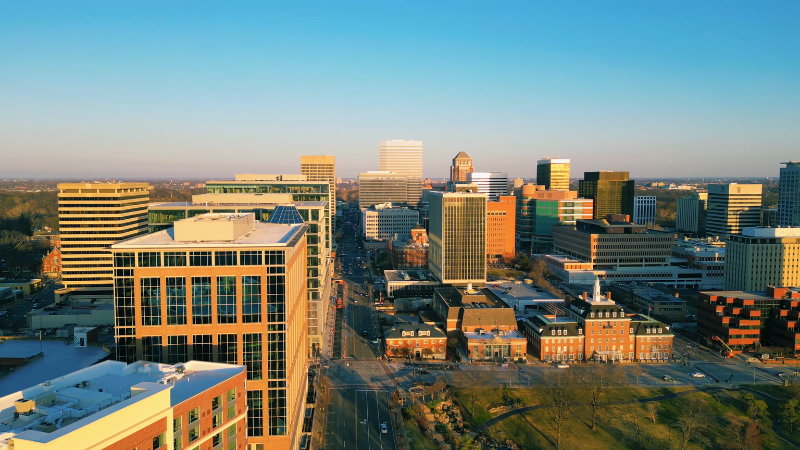 Urban downtown area, upscale restaurants, and luxury condos.